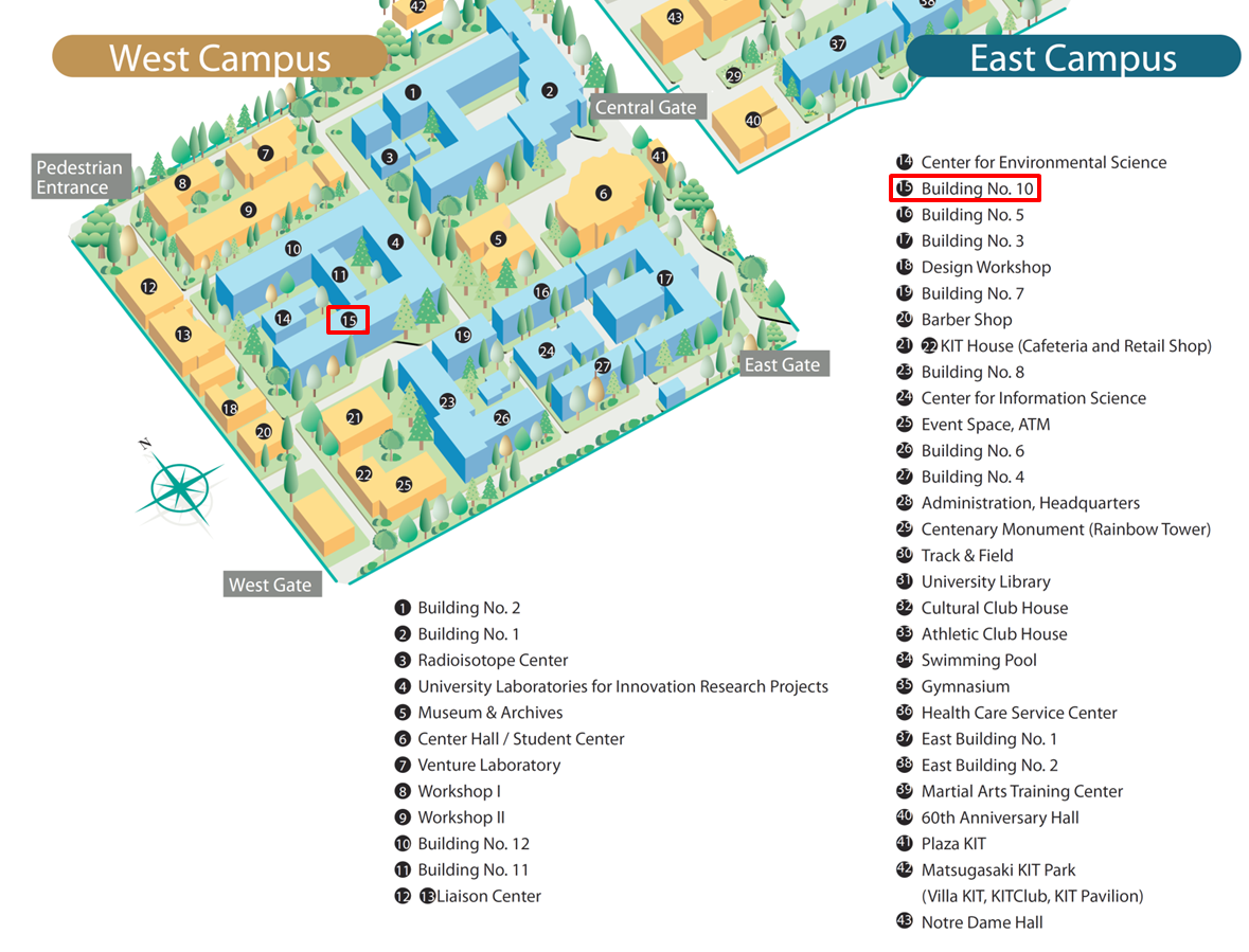 Robotics Lab. is located in Building No. 10. Professor Sawada's room is 527.