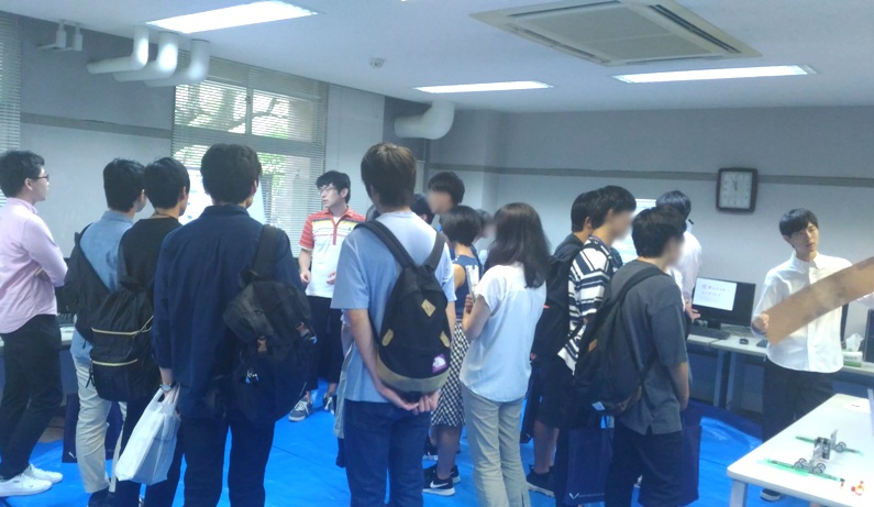 高校生を対象として,研究を進めているマニピュレータや飛行ロボットに関する展示を行い,